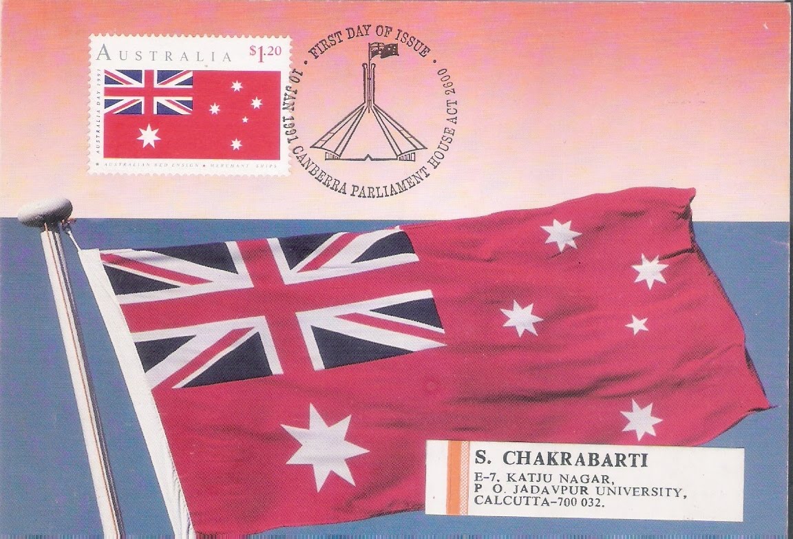 We will discuss about the Flags at Sea chapters wise, viz. Ensign, Jack, Pennant, Courtesy Flag, House Flag, Flag of Convenience, Signal Flags, Rainbow Fashion, Pirate Flag, Yacht Flag and finally “Flag Customs at Sea” with philatelic illustrations.The term ‘ENSIGN’ is derived from Greek ‘Semeion’, Latin equivalents ‘Signus’ and ‘Insigne’ is the distinguishing National flag worn by ships at or near the stern. According to Late E. M. C. Barraclough, foremost flag historian, the term 'Ensign' was first used by the British Navy way back in 1574.